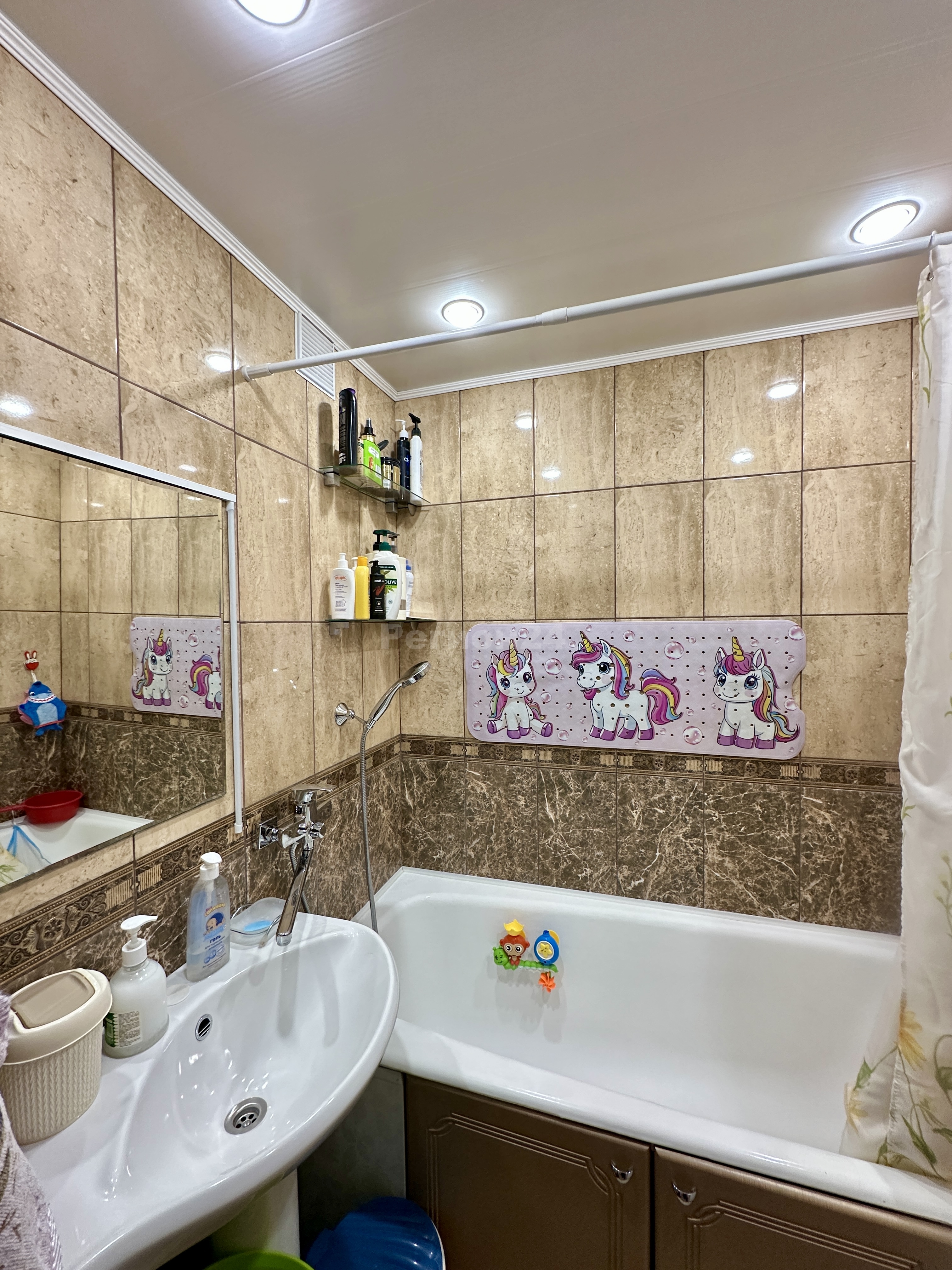 Санузел: Ванная комната отделана кафелем, сантехника заменена на новую.