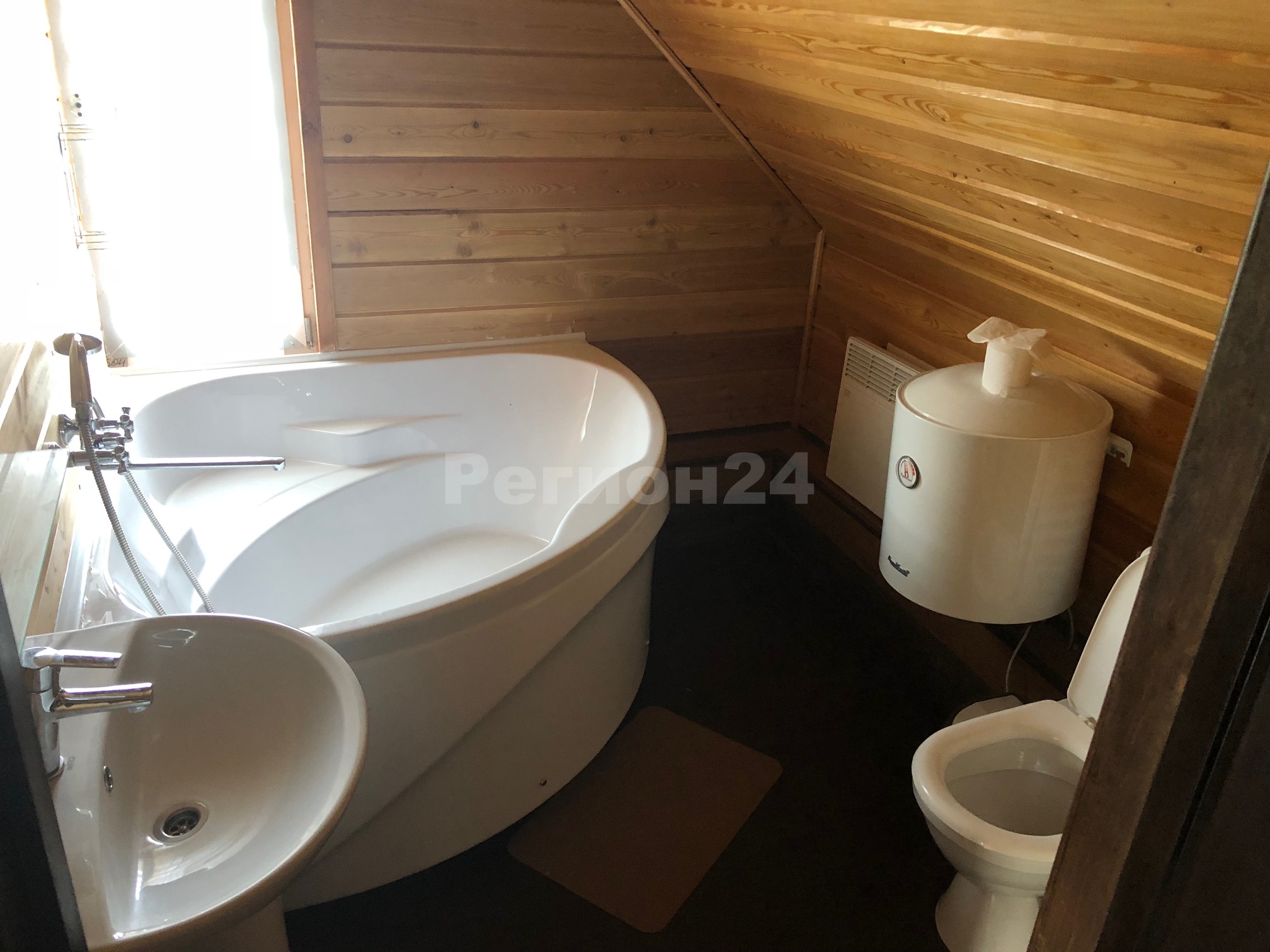 Построено из клееного бруса толщиной 240 мм.